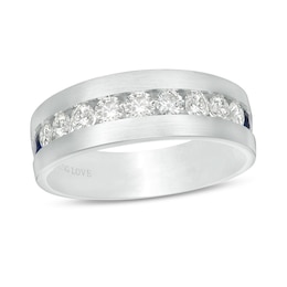 Men S Square Cut Blue Sapphire And 3 8 Ct T W Diamond Ring In 14k White Gold Zales Outlet
