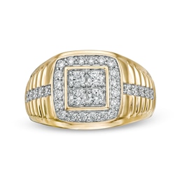Men S 3 Ct T W Rectangular Multi Diamond Double Row Frame Ring In 10k Gold Zales